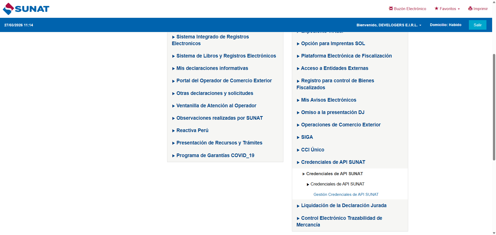 Ingresa a tus Trámites y Consultas en: https://www.sunat.gob.pe/sol.html Registra tu Clave SOL y selecciona la opción “Empresas” - credenciales de API SUNAT - Credenciales de API SUNAT - Gestión Credenciales de API SUNAT