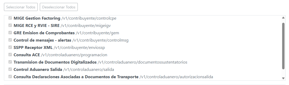 Ingrese el nombre y la URL de su aplicación, luego, seleccione los servicios de SUNAT que desea integrar en la aplicación registrada: